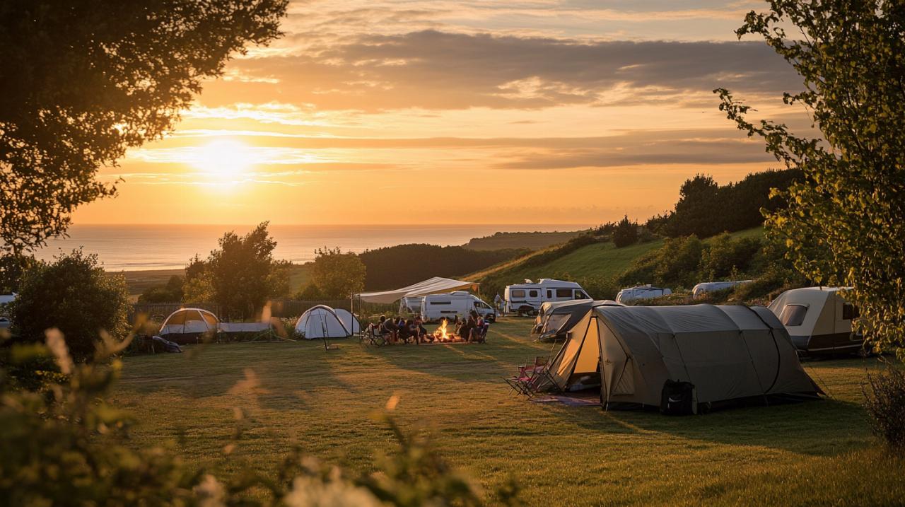 Séjourner en camping à Port-en-Bessin offre un accès privilégié aux sites majeurs du débarquement de Normandie. Omaha Beach et Utah Beach, plages emblématiques du 6 juin 1944, se trouvent à proximité et constituent des étapes émouvantes pour comprendre l'histoire de la Seconde Guerre mondiale. La région compte 43 campings 4 étoiles dans un rayon raisonnable, le plus proche étant situé à 21 kilomètres de Port-en-Bessin-Huppain, offrant ainsi de nombreuses options d'hébergement pour rayonner dans la région. Au total, 81 campings recommandés sont recensés dans un rayon de 100 kilomètres, le plus proche se situant à seulement 6 kilomètres, démontrant la richesse de l'offre touristique dans le Calvados. Les tarifs des séjours restent attractifs, avec des offres débutant à partir de 210 euros pour 7 nuits, et certaines promotions proposant des prix encore plus avantageux dès 132 euros la semaine. Des villes comme Ouistreham et Litteau, qui concentrent chacune 3 campings, constituent également d'excellentes bases pour explorer la région. Bayeux, ville médiévale abritant la célèbre tapisserie, se trouve à quelques kilomètres et mérite une visite approfondie. Les campings de la région proposent diverses catégories de standing, allant des établissements 1 à 5 étoiles, avec des équipements variés incluant piscines extérieures, toboggans aquatiques, accès direct à la plage et animations pour enfants.